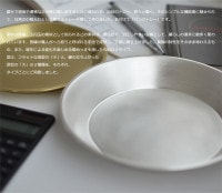 素材は真鍮。5円玉の素材として知られるこの素材は、柔らかく、加工しやすい金属として、暮らしの道具に数多く使われています。熟練の職人がへら絞りと呼ばれる手法で成形し、丁寧に磨き上げました。真鍮の特性をそのまま味わえるもの、また、経年による変化を楽しめる銀めっきを施したものの2タイプ。