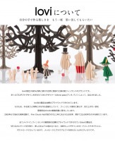 loviは国土の80%が森と湖の大自然に囲まれた森の国フィンランドのブランドです。多くのプロダクトデザインを手がけてきたデザイナーのAnne paso(アンネ パソ)によって、設立されました。lovi社の製品は白樺のプライウッドで作られています。そのため、木を使うと同時に木を守る活動もしていて、フィンランド国内に限らず、売り上げの一部を環境保全のための植栽活動に寄付しています。2009年より始めた植林活動で、Finn Church Aidの協力のもと1年におよそ5,000本、累計で25,000本もの木を植えています。