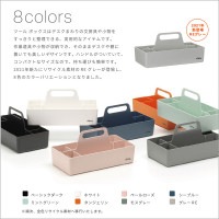 イスラエル出身デザイナーのArik Levy(アリック・レヴィ)がデザインを 手掛けたToolboxには、日常の小さな作業道具やアクセサリーを収納したり、 簡単に持ち運んだりできる実用的なオーガナイザーです。 豊富なカラーバリエーションで、お部屋やオフィスのアクセントになるデザインです。 2021年、新たな新色RE"Gray"が登場しました。 100%再利用できる、エコロジカルで高品質なリサイクルプラスチックが使用されています。 RE"Gray"はリサイクル素材の特性そのまま活かされ、一つずつニュアンスが異なります。 順次、その他のカラーもサスティナブルなリサイクル仕様(RE)に移行いたします。