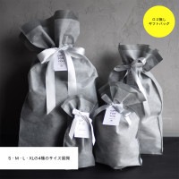 シンプルなグレーのロゴ無し巾着です。 S・M・L・XLの4種のサイズ展開なので 小さい商品から大きい商品まで広く対応しております。 シンワショップのオリジナルタグ付きです。