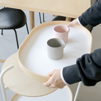 いつも使うもので、これもできればいいのに。トレーとして、そしてサイドテーブルとしての機能を併せ持ったBY TRAY TABLE は、そんな想いを形にしたものです。それは、まるで機能性の向上には限界がないと私たちに伝えるかのように、たった一つの機能を追加するだけで、今まで気づかなかった日常のストレスが驚くほど軽減され、使う人の所作をも美しく、無駄のないものにしてくれます。また、過度な主張をしないデザインは、どんな空間にも溶け込み、本体を構成する素材の軽さは、どこへでも運ぶことができる手軽さを私たちに与えてくれます。BY TRAY TABLE は、洗練された利便性と、でもそれだけではない完成度の高いデザインで、美しい生活空間の作り方を教えてくれているようです。