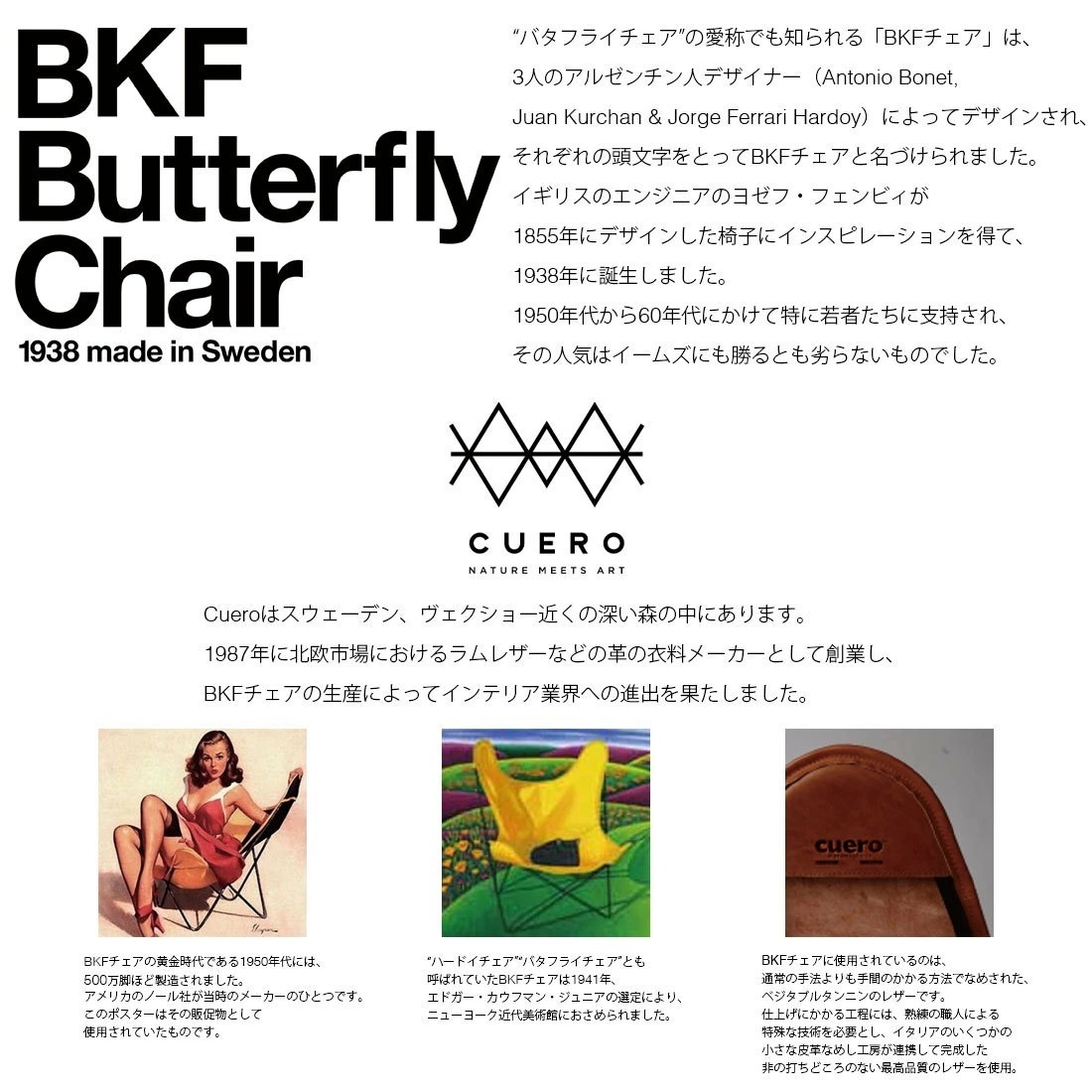 【レザーケアーキットプレゼント中】CUERO クエロ キュエロ BKFチェア 椅子 ブラック Butterfly Chair mariposa 黒 チェア 北欧 レザー 革