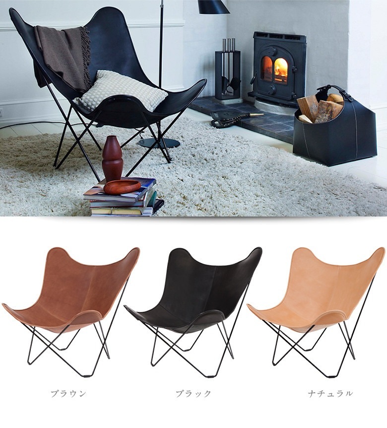 【レザーケアーキットプレゼント中】CUERO クエロ キュエロ BKFチェア 椅子 ナチュラル ブラウン Butterfly Chair 茶色 北欧 レザー 革