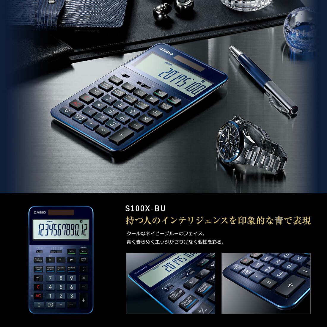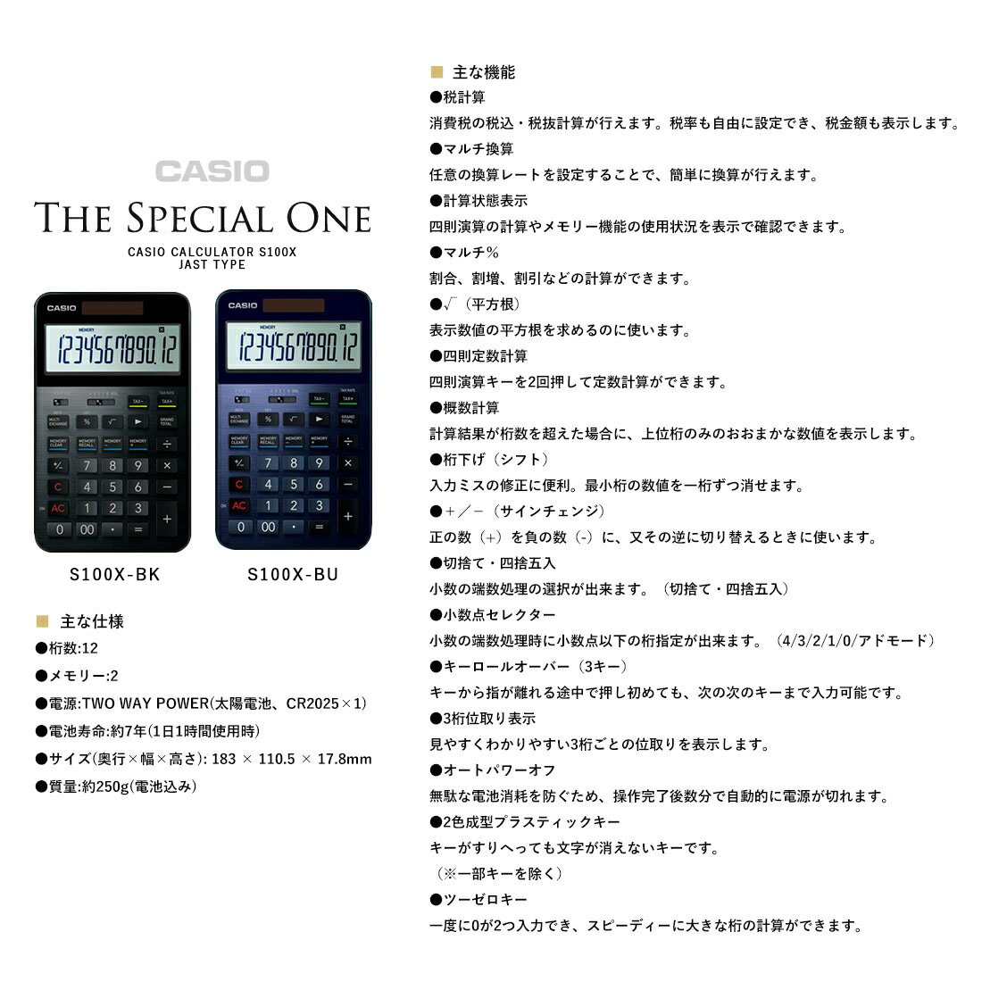 CASIO カシオ CALCULATOR S100X-BK S100X-BU ステーショナリー 日本 オフィス カリキュレーター 電卓 計算機 12桁FSTN液晶【ギフト特集】