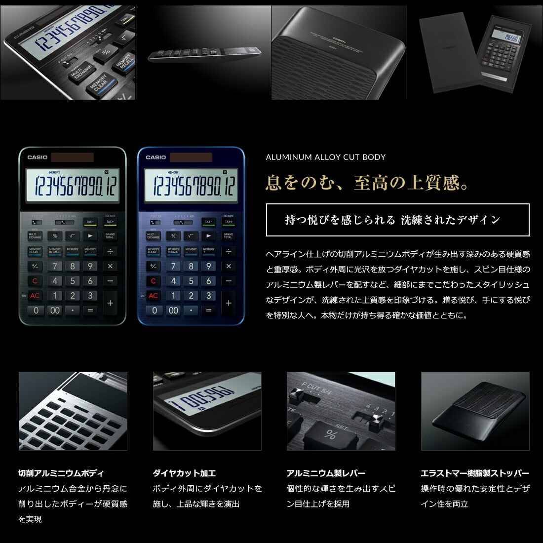 1983年に発売されたカード電卓『SL-800』は、究極の薄型化技術で世界最薄※の厚さ0.8mmを実現。電卓を手軽に携帯する文化を生み出し、ニューヨーク近代美術館にも収蔵されている。また、より高い技術力が求められる関数電卓の分野でも、その進化を牽引し続け、多くの学生、技術者、研究者を支えている。『計算』を『革新』してきたその歴史は、科学史においても重要な役割を担っている。