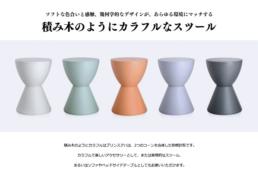 積み木のようにカラフルはプリンスアハは、2つのコーンを合体した砂時計形です。 カラフルで楽しいアクセサリーとして、または実用的なスツール、 あるいはソファやベッドサイドテーブルとしてもお使いいただけます。