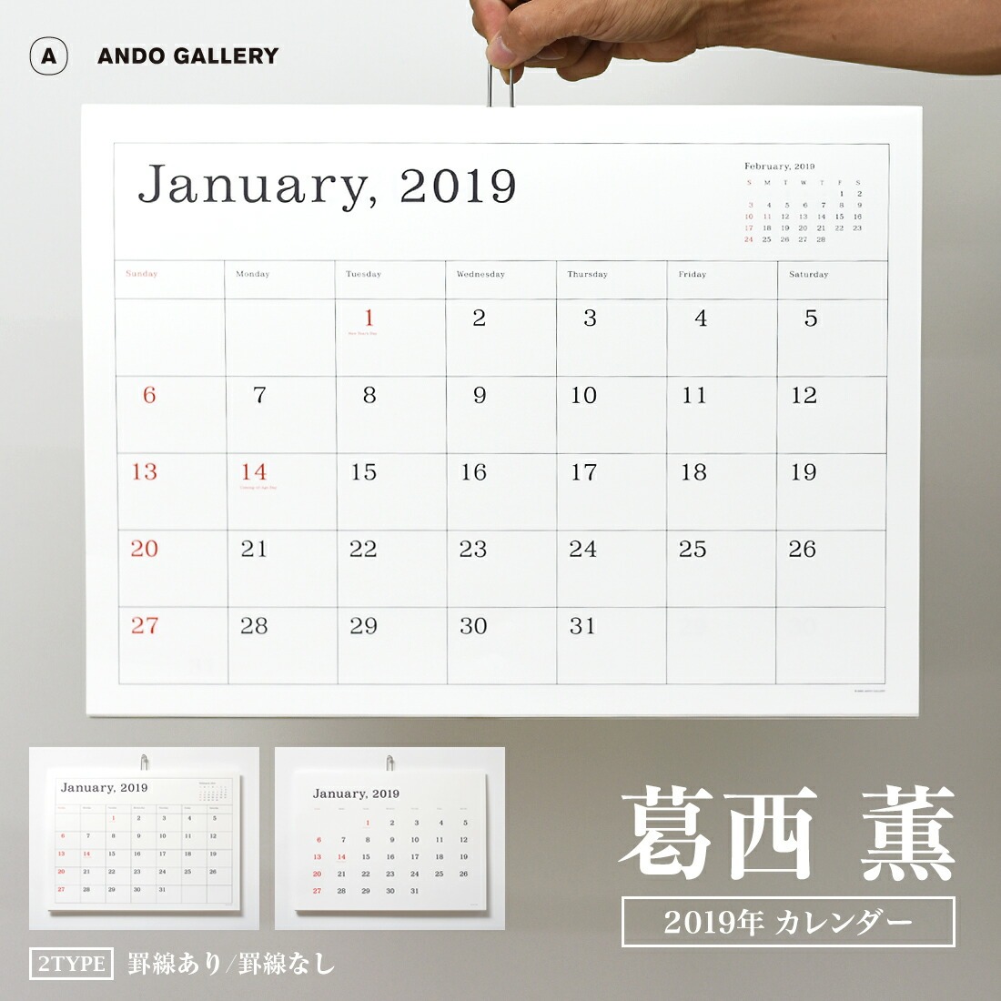 平成31年度/壁掛け/罫線あり/罫線なし/Kハンガー/シンプル/アンドーギャラリー/KASAI Kaoru/葛西薫カレンダー【コンビニ受取対応商品】【RCP】