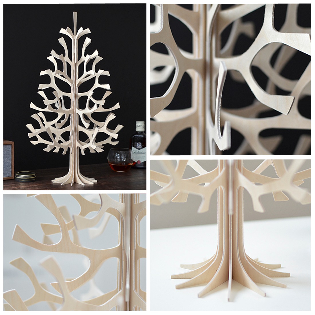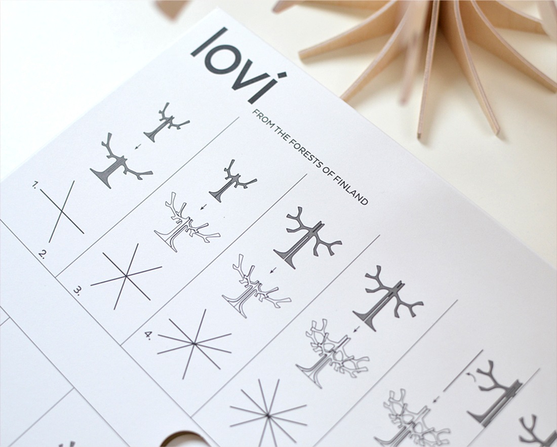 切り込みにそって切り取り、差し込むように組み立てると、北欧らしいデザインのオーナメントやオブジェに。