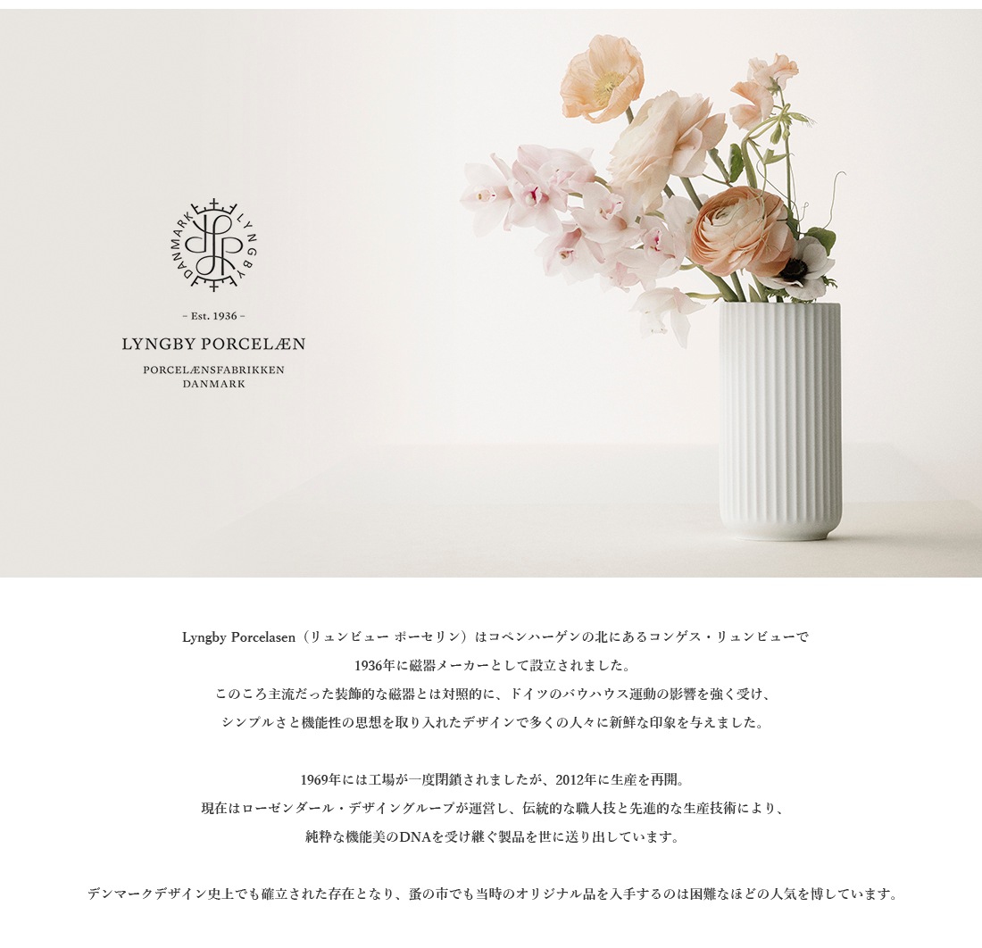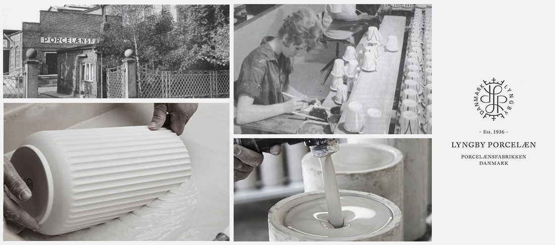 Lyngby Porcelanはコペンハーゲンの北にあるコンゲンス・リュンビューで1936年に磁器メーカーとして設立しました。このころ主流だった装飾的な磁器とは対照的に、ドイツのバウハウス運動の影響を強く受け、シンプルさと機能性の思想を取り入れたデザインで多くの人に新鮮な印象を与えました。デンマークデザイン史上でも確立された存在となり、当時のオリジナル品を入手するのは蚤の市でも困難なほどの人気を博しています。しかし1969年には工場が一度閉鎖され、2012年に生産を再開。現在はローゼンダール・デザイングループが運営し、伝統的な職人技と先進的な生産技術により、純粋な機能美のDNAを受け継ぐ製品を世に送り出しています。