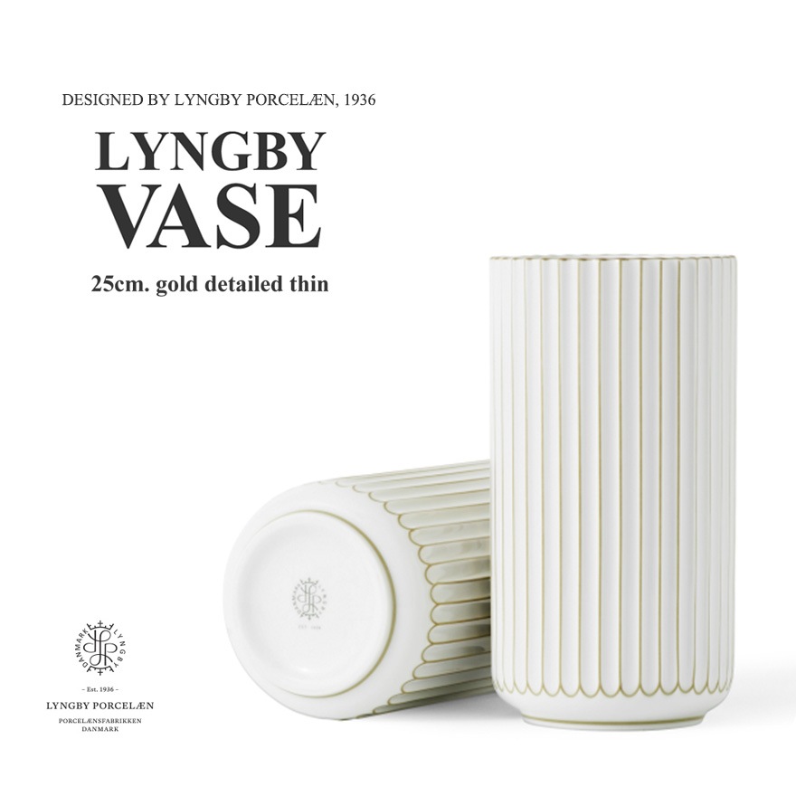 【Lyngby Porcelaen/リュンビュー ポーセリン】LYNGBY VASE/リュンビュー ベース 25cm gold detailed thin 200697