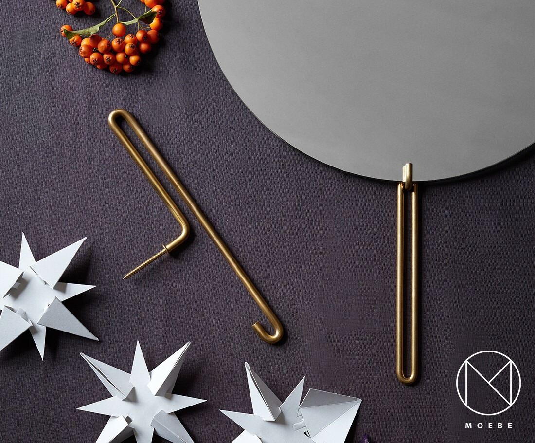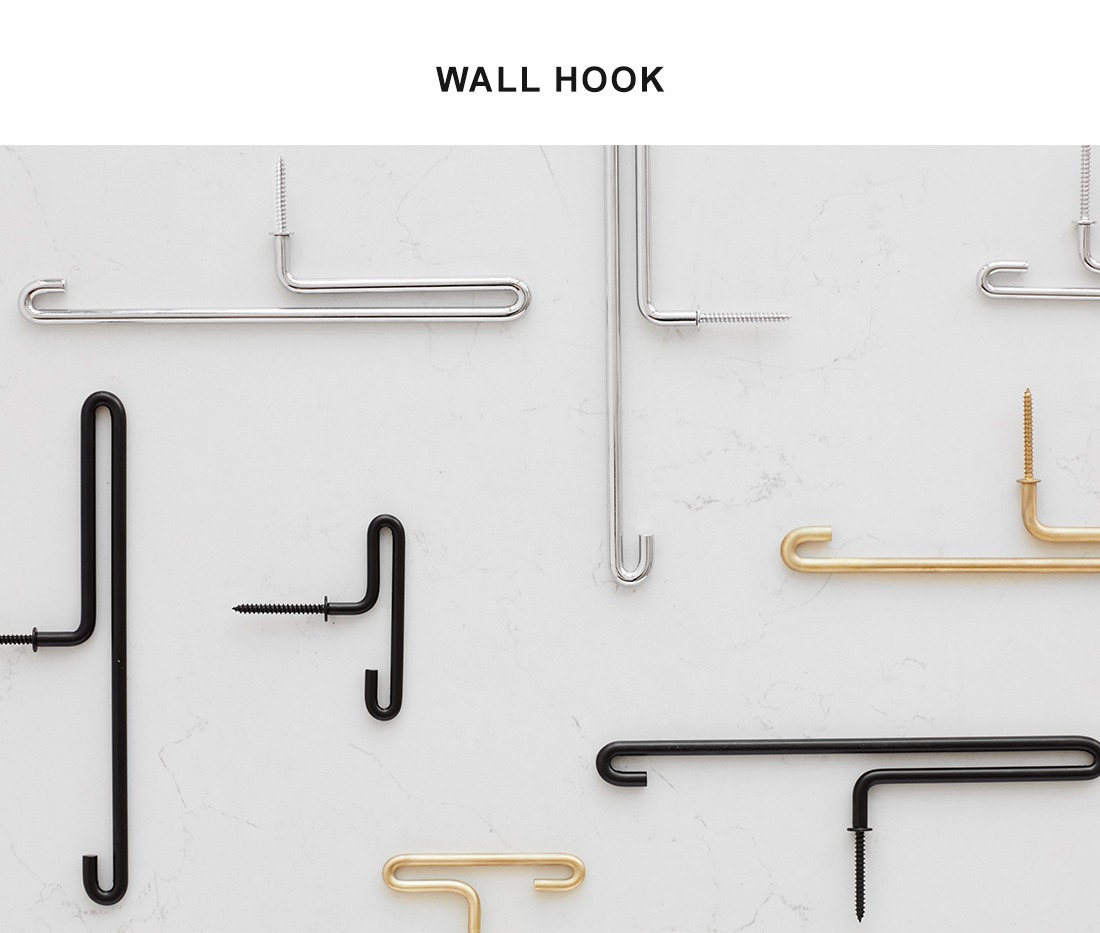 緻密な構造とミニマリズムを追求したデザインプロダクトを生み出しているMOEBEから WALL HOOK が新登場。WALL HOOKには、上下2箇所にハンギングできるフックが付いています。上部のゆるやかな曲線状のフックにはコートやジャケット、シャツなどのデリケートな衣類をかけておくのに最適です。下部のフックは小さめの返しが付いているので、ティータオルのループを引っ掛けたり、ハンガーを引っ掛けたり、ネックレスやストラップなど細々としたものを吊るしておくのにも使えます。追加のパーツなどはなく、フックについているネジを差し込むだけで簡単に壁に取り付けることができます。