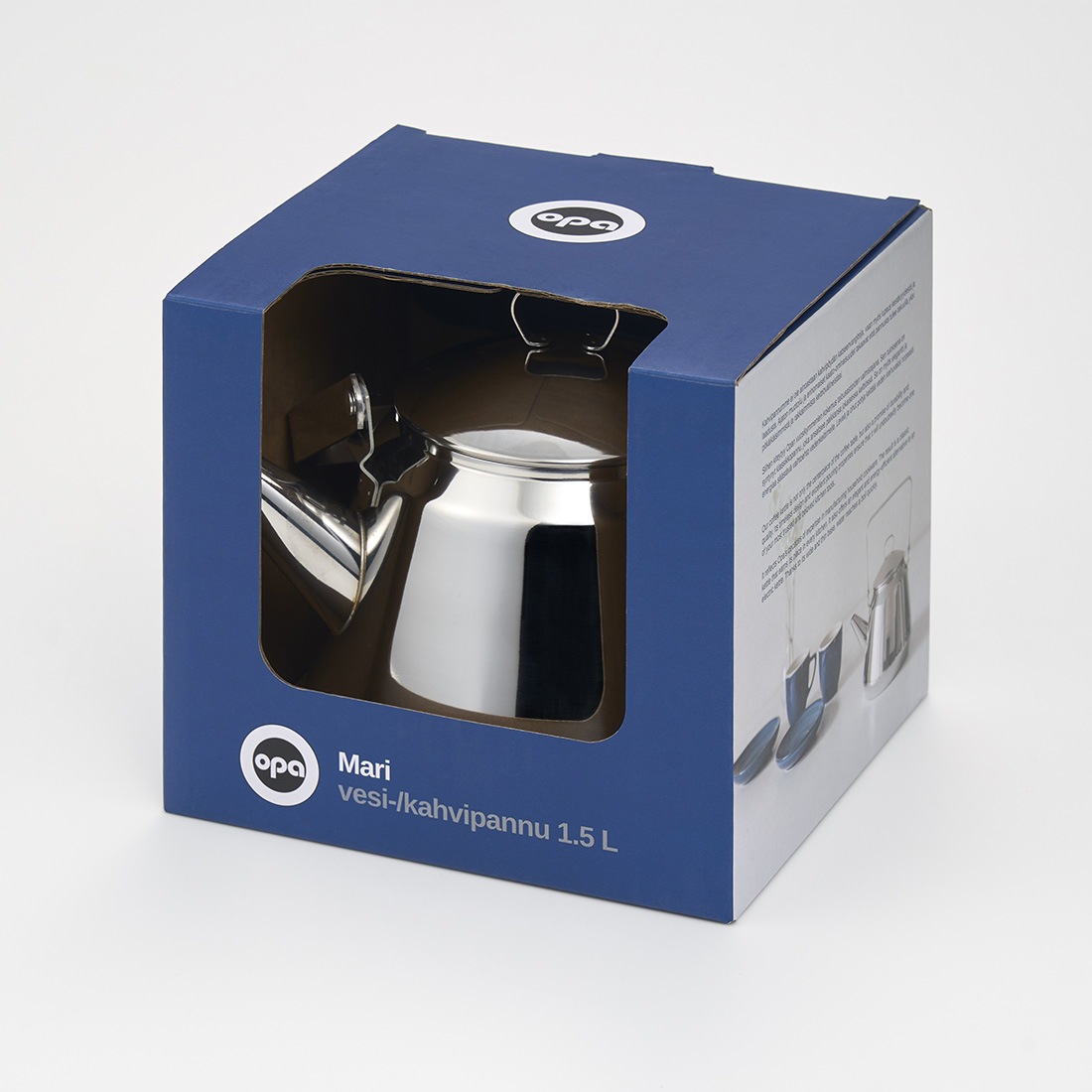 OPA社のケトルは、フィンランドの家庭で長年愛されているロングセラーです。 1626年の創業以来、OPA社は機能性に優れ、かつ洗練されたデザインのキッチン用品を数多く作り出しています。なかでもMariシリーズのケトルは、映画や雑誌に登場し、日本でも知られるようになりました。 素材に18-08ステンレスを使用し、サビにくく耐久性に優れたケトルです。