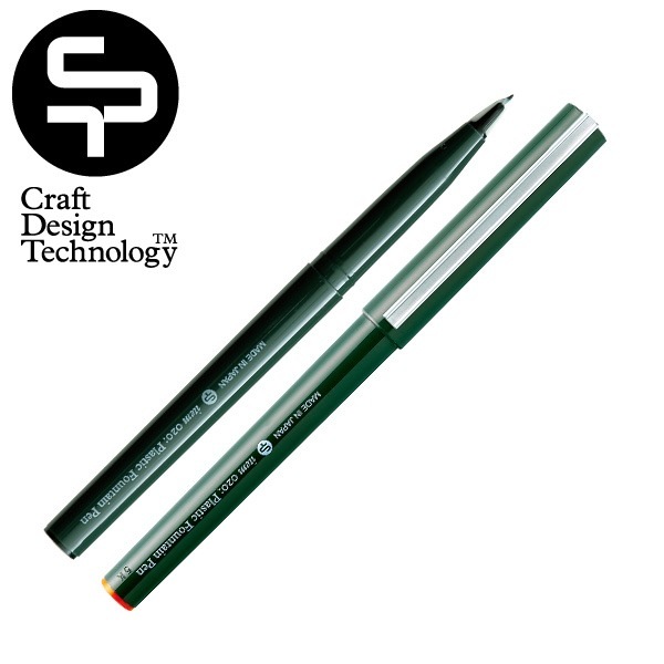 ペン先がプラスティック製の万年筆。柔らかい書き味と、筆記角度によって、0.4mm~0.7mm迄の筆記線幅を表現できます。