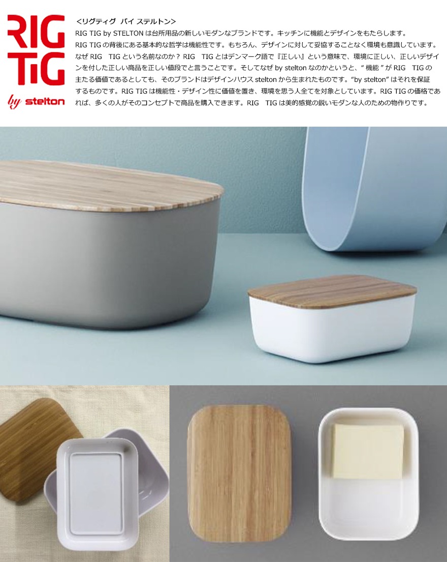 <リグティグ バイ ステルトン> RIG TIG by STELTONは台所用品の新しいモダンなブランドです。キッチンに機能とデザインをもたらします。 RIG TIGの背後にある基本的な哲学は機能性です。もちろん、デザインに対して妥協することなく環境も意識しています。 なぜRIG TIGという名前なのか?RIG TIGとはデンマーク語で『正しい』という意味で、環境に正しい、正しいデザイ ンを付した正しい商品を正しい値段でと言うことです。そしてなぜby steltonなのかというと、“機能”がRIG TIGの 主たる価値であるとしても、そのブランドはデザインハウスsteltonから生まれたものです。“by stelton”はそれを保証 するものです。RIG TIGは機能性・デザイン性に価値を置き、環境を思う人全てを対象としています。RIG TIGの価格であ れば、多くの人がそのコンセプトで商品を購入できます。RIG TIGは美的感覚の鋭いモダンな人のための物作りです。