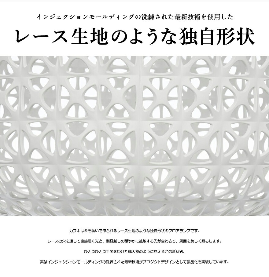 カブキは糸を紡いで作られるレース生地のような独自形状のフロアランプです。