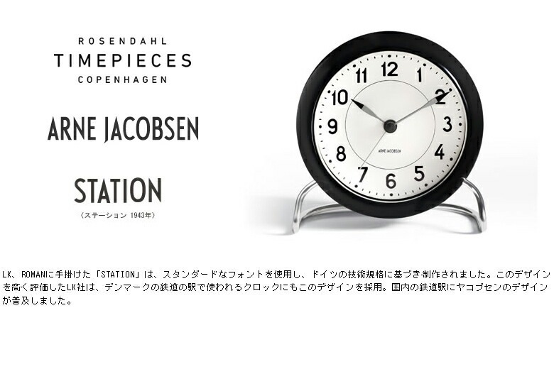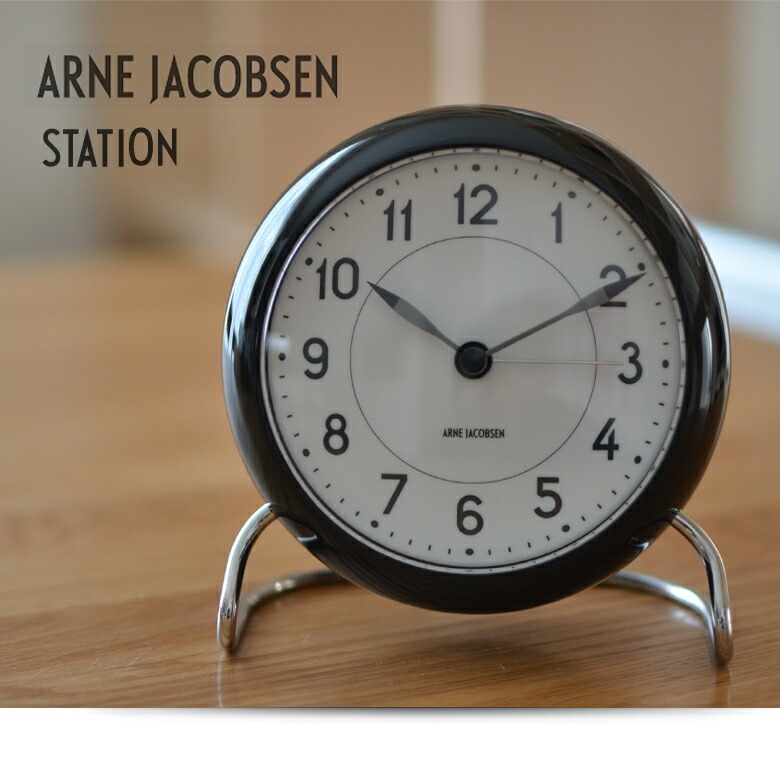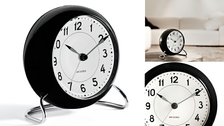AJクロック 43672 STATION ステーション ブラック 110mm TABLE CLOCK アルネ・ヤコブセン ARNE JACOBSEN