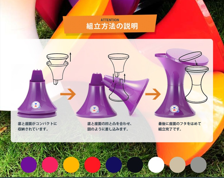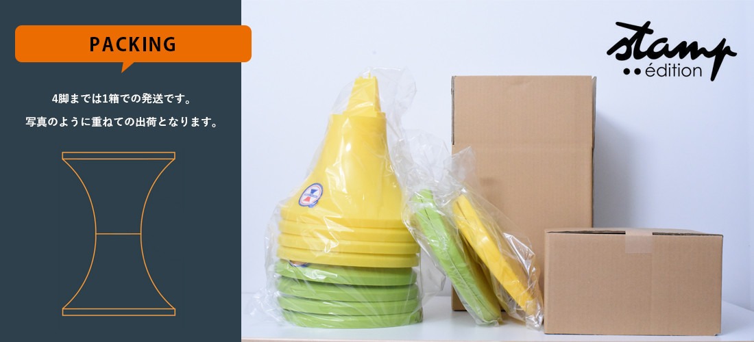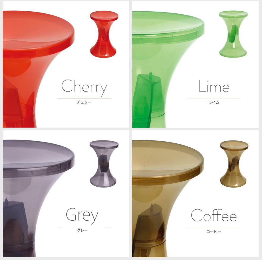 3種のパーツで構成された上下対称のスツールは、組立が容易に可能です。 また未使用時 には解体して積み重ねることで、コンパクトなサイズになります。 豊富な素材やクリアタイプ9色のラインナップがあるので、好みやインテリアに合わせてコーディネート が可能です。