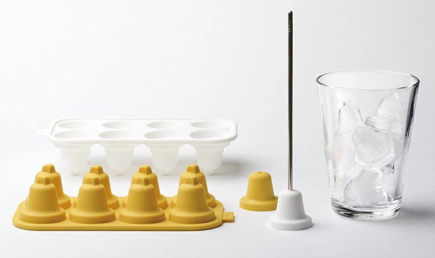 氷のベルを作るための製氷トレイです。飲み物の中に浮かぶベルの澄んだ音は心地よく耳に響き、気持ちを和ませてくれます。ちょっとした日常の一杯を、氷の音色を奏でながらお楽しみください。