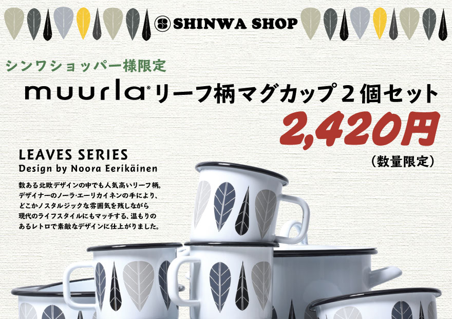 【muurla/ムールラ】LEAVES SERIES リーフ柄マグ 2個セット
