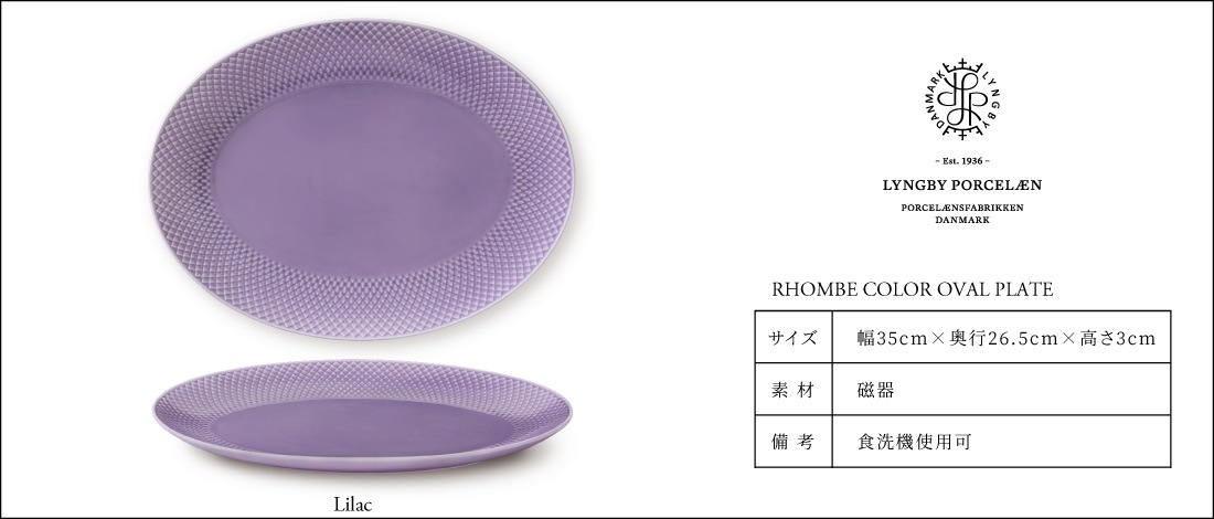 【LYNGBY PORCELAIN/リュンビュー・ポーセリン】RHOMBE COLOR OVAL PLATE 35cm/ロンブ/カラー/プレート/STILLEBEN/Lilac/Purple/Violet/皿/食器/スティルレーベン/ライラック/パープル/紫/コンビニ受取対応