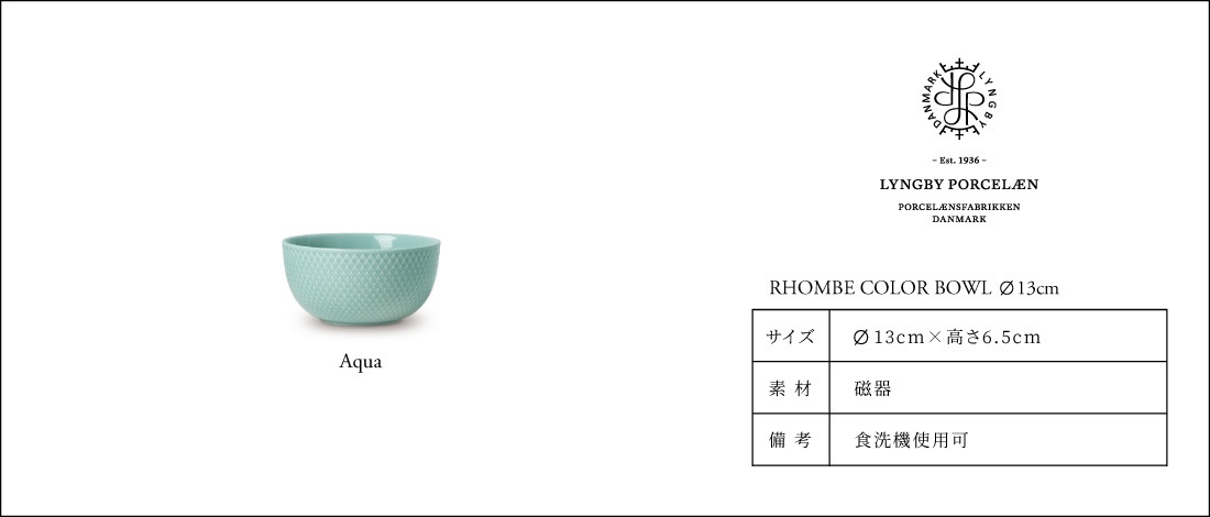 【LYNGBY PORCELAIN/リュンビュー・ポーセリン】RHOMBE COLOR BOWL 13cm/ロンブ/カラー/ボウル/STILLEBEN/Aqua/Blue/Porcelain/鉢/食器/スティルレーベン/アクア/ブルー