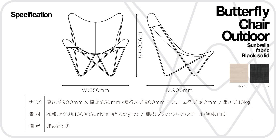 CUERO クエロ キュエロ BKFチェア 椅子 チャコール ホワイト Butterfly Chair Outdoor Sunbrella Fabric 黒 白 チェア 北欧