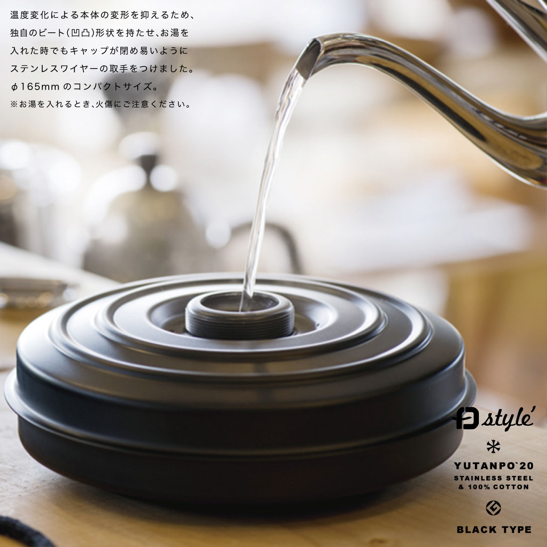 | 材質 | 本体:18-8ステンレススチール 耐熱塗装仕上(キャップ部のみミラー仕上) カバー:ウール100% |