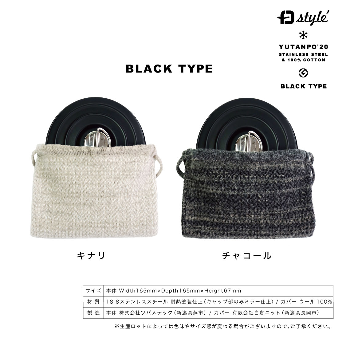 【FD STYLE/エフディスタイル】YUTANPO‘20 BLACK TYPE/湯たんぽ/ブラック/ウールカバー/ホールガーメント/ツバメテック/白倉ニット/新潟/日本製/メイドインジャパン/Made in Japan/コンビニ受取対応