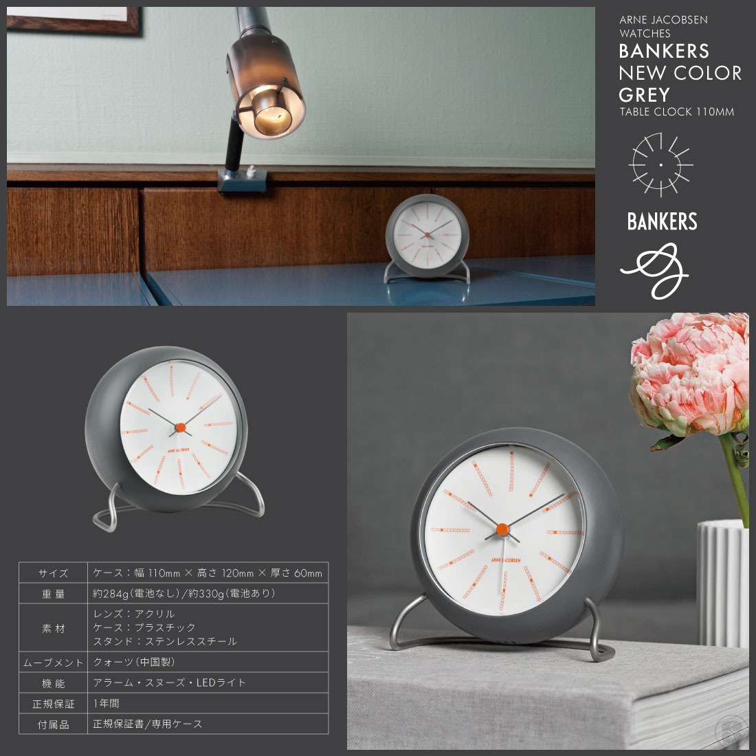 ARNE JACOBSEN WATCHES/BANKERS/TABLE CLOCK/110mm/NEW COLOR/GREY