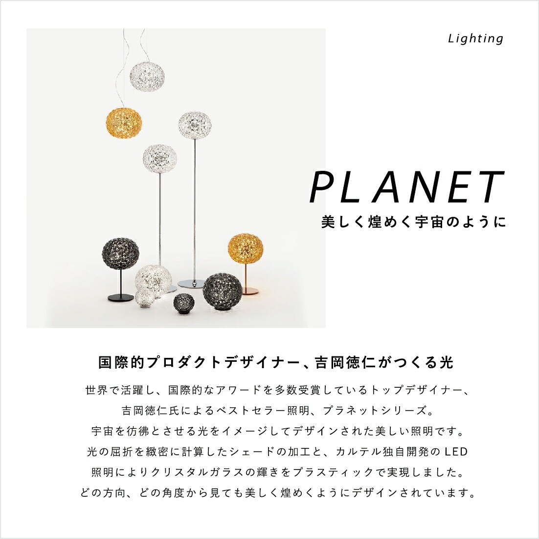 吉岡徳仁氏によるベストセラー照明、プラネットシリーズ。