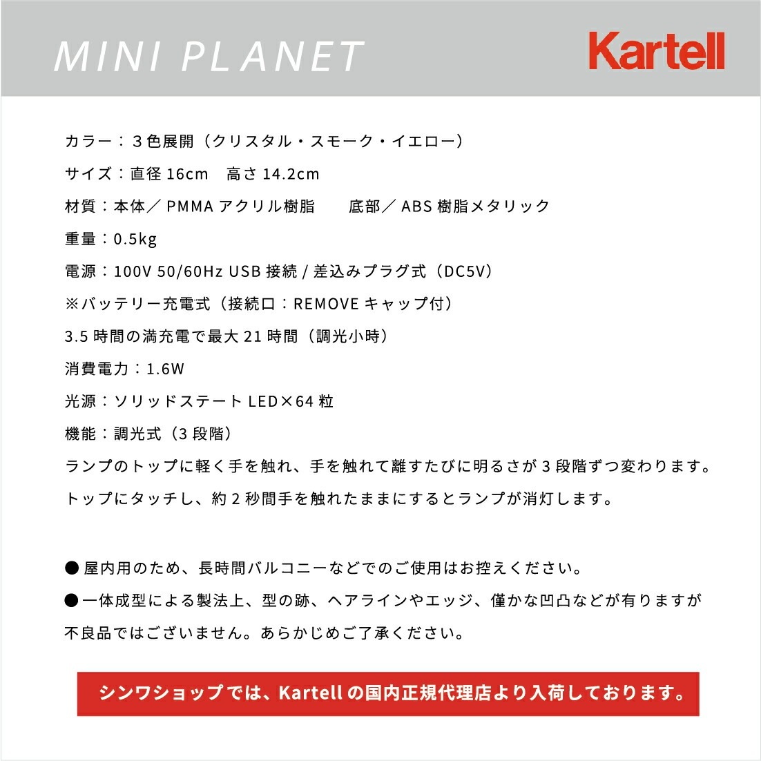【店舗クーポン利用不可】 kartell カルテル MINI PLANET ミニプラネット テーブルランプ 吉岡徳仁 照明 ライト LED