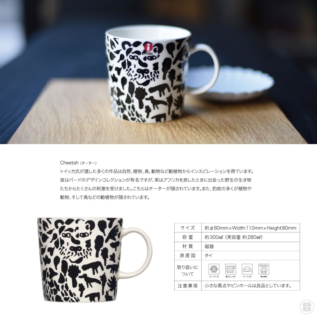 iittala/イッタラ/Oiva Toikka Collection/Cheetah black/Mug 0.3l/オイバ・トイッカコレクション/チーター/ブラック/マグ/300ml
