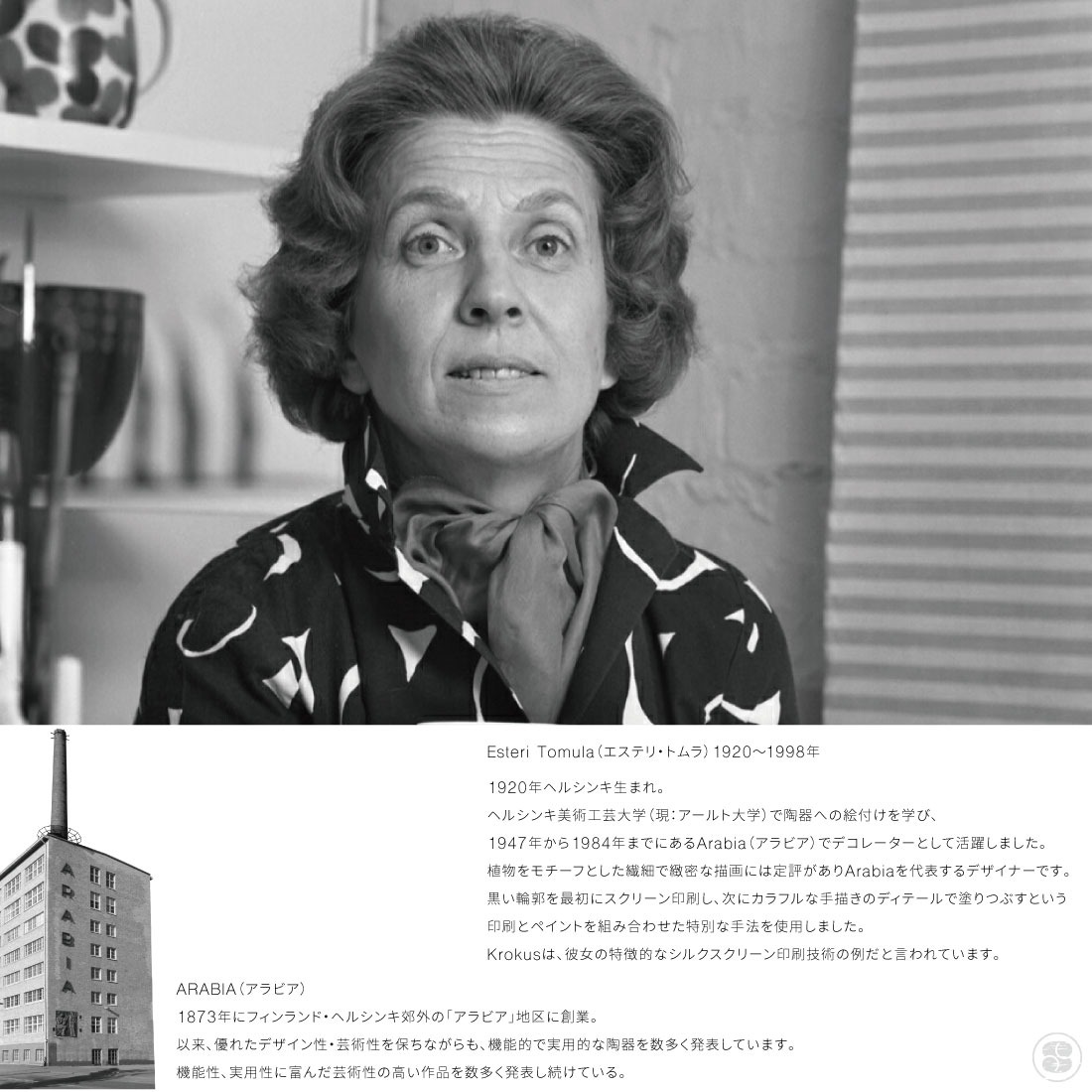 アラビアを代表する女性デザイナー、エステリ・トムラがデザインしたクロッカスのパターンを復刻しました。