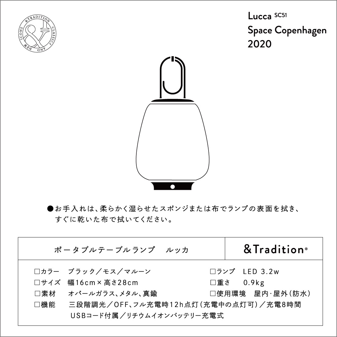 【&TRADITION/アンドトラディション】Lucca SC51/ルッカ/ポータブルランプ