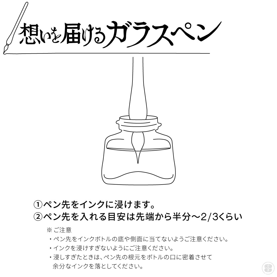 ・ペン先をインクボトルの底や側面に当てないようご注意ください。