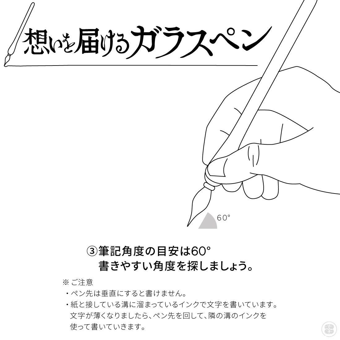 ・ペン先は垂直にすると書けません。