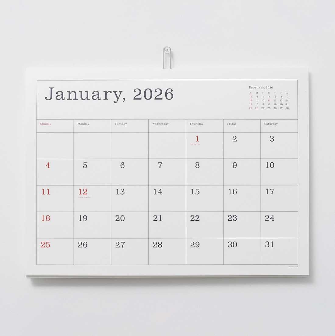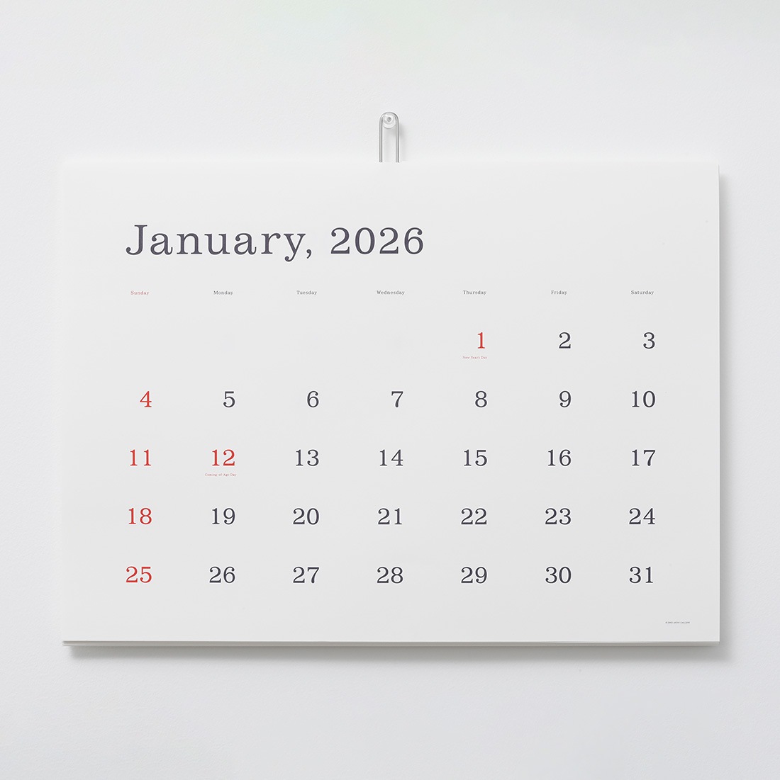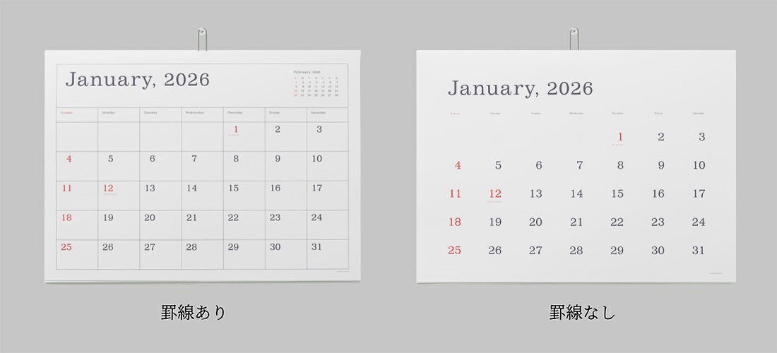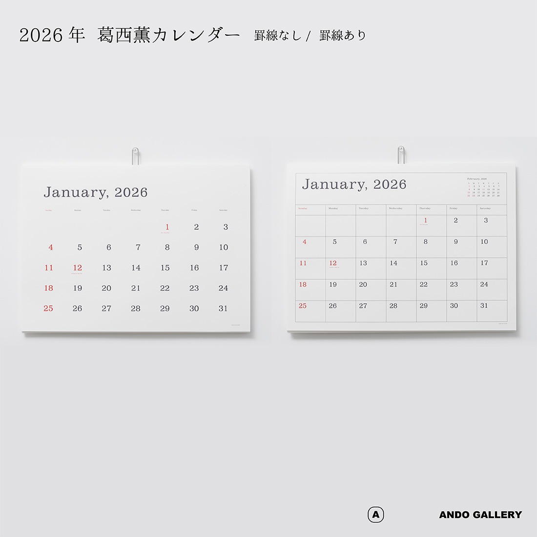 ANDO GALLERY 葛西薫 2026年カレンダー 単品 令和8年 壁掛け 罫線あり 罫線なし シンプル アンドーギャラリー KASAI Kaoru calendar 2026