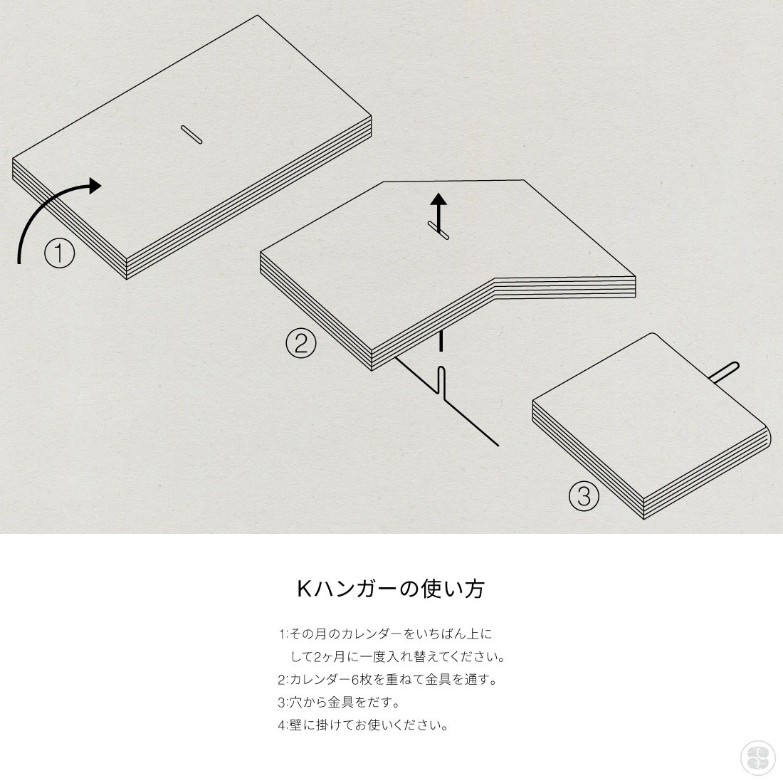 紙面中央に差し込んで壁に掛けて使用します。