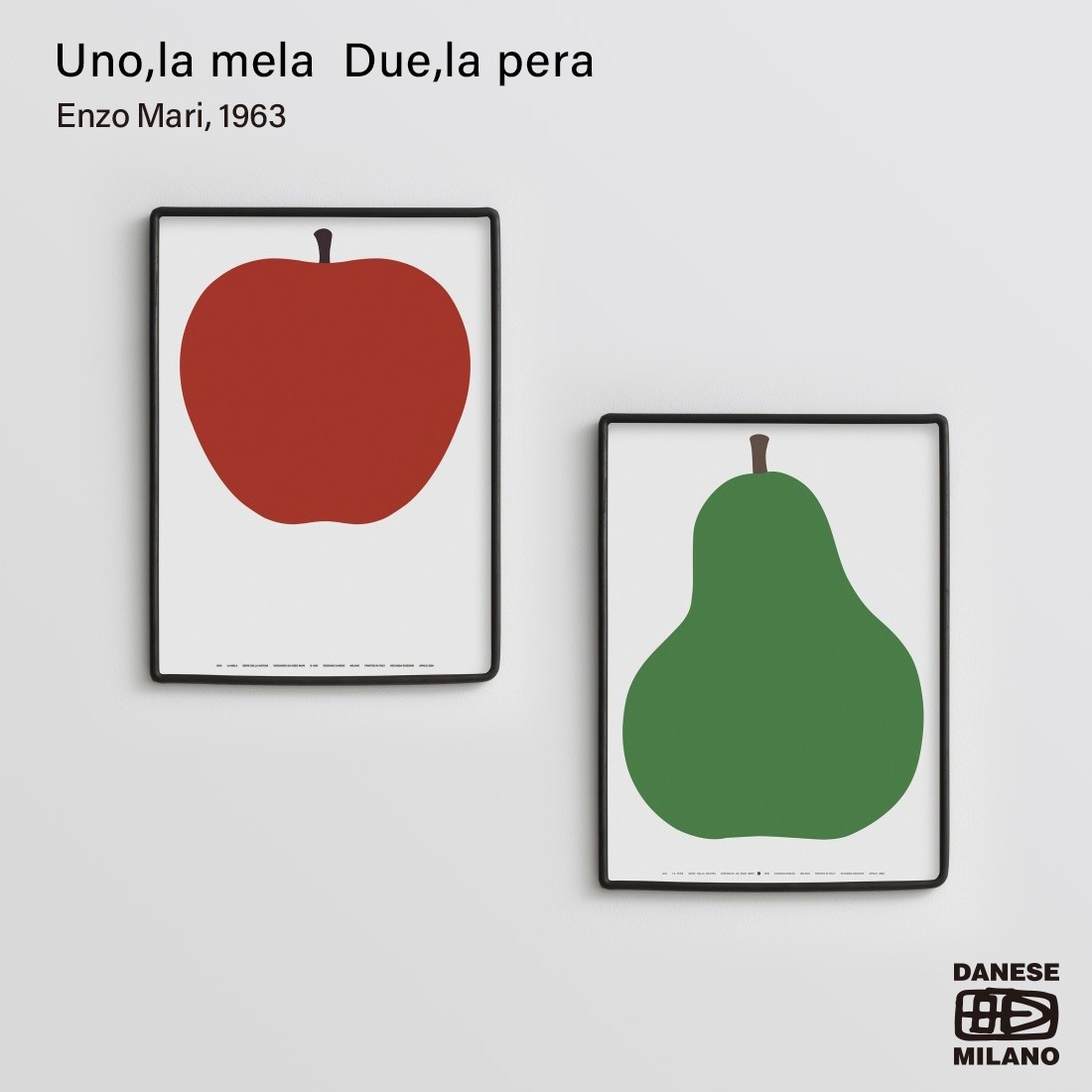DANESE ダネーゼ ポスター単品 Uno,la Mela ウーノ・ラ・メラ 赤りんご Due,la pera デュエ・ラ・ペラ Enzo Mari エンツォ・マーリ 洋ナシ緑 50×70cm ポスター アート イタリア