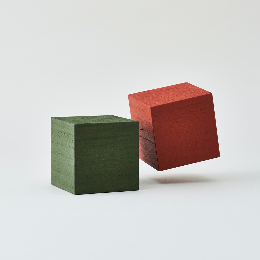 ひとつは地面に置かれ、もうひとつは宙に浮いています。