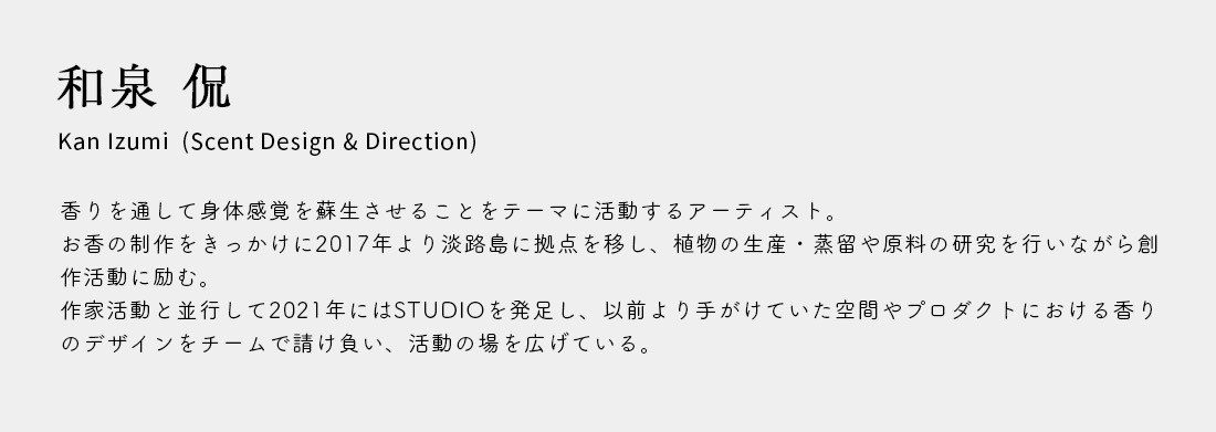 お香の制作をきっかけに2017年より淡路島に拠点を移し