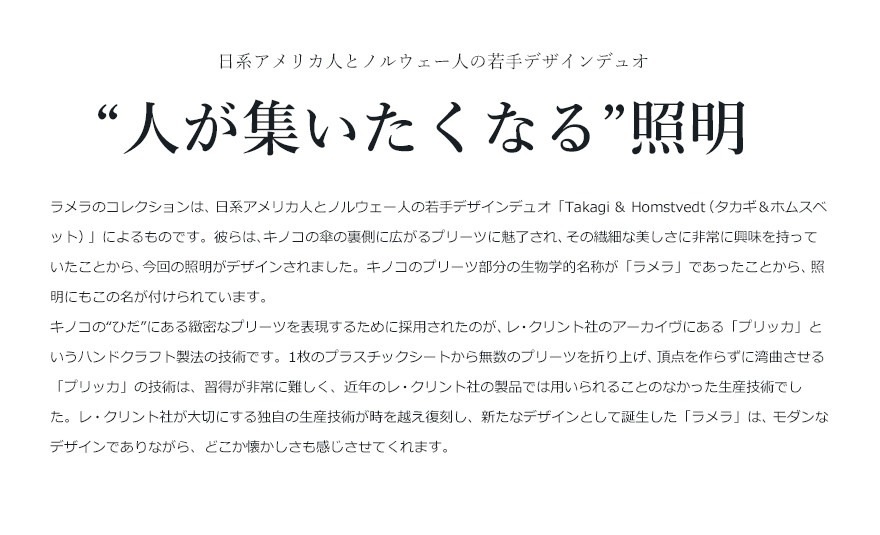 照明にもこの名が付けられています。キノコの“ひだ”にある緻密なプリーツを
