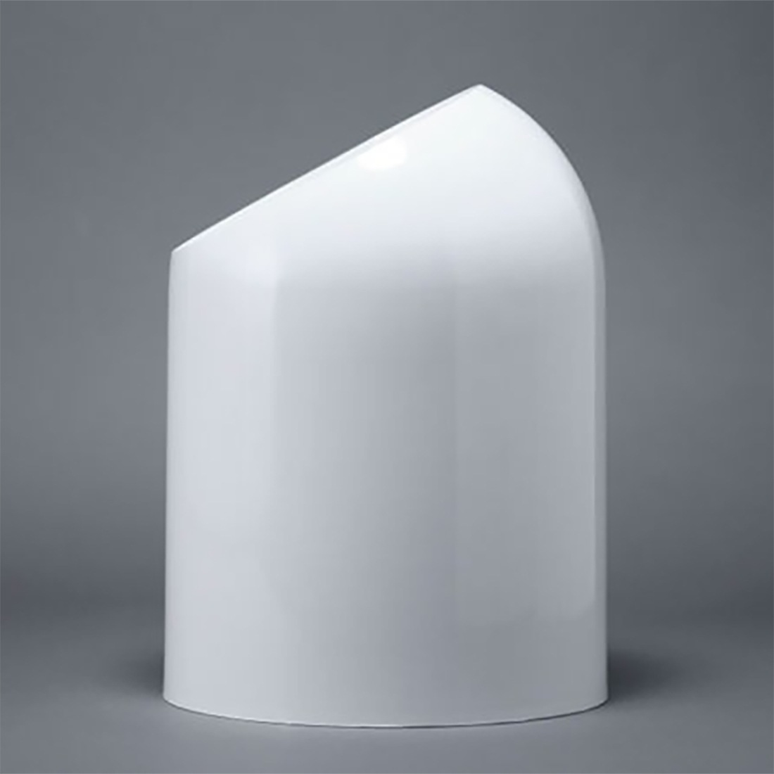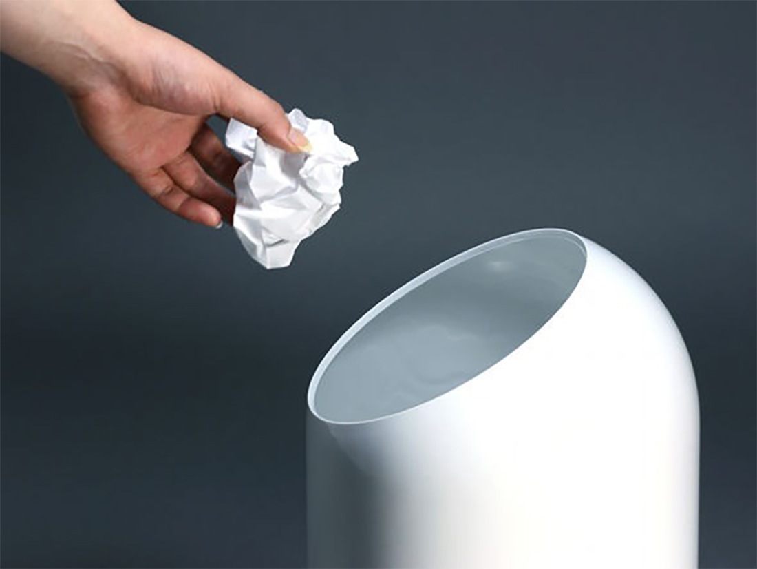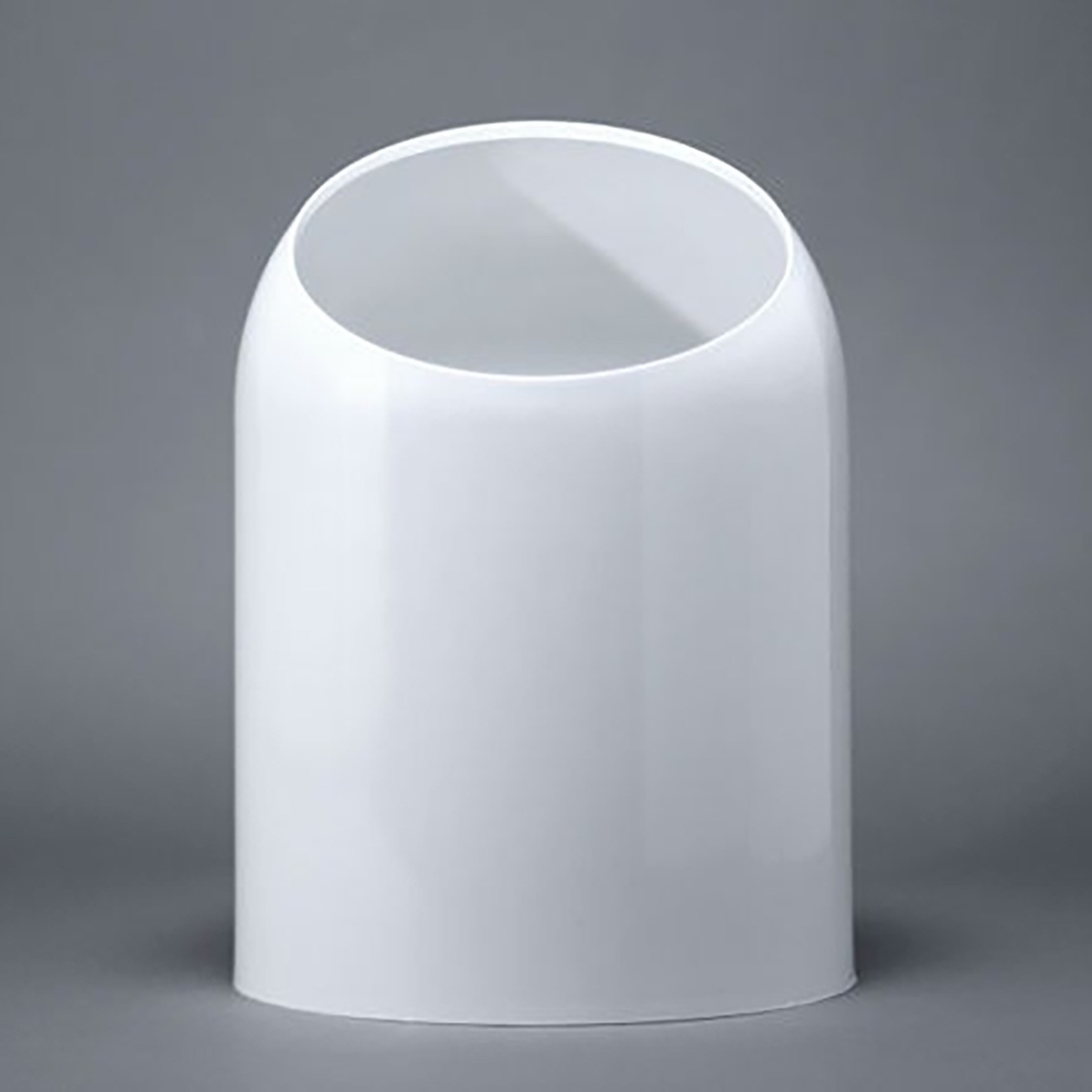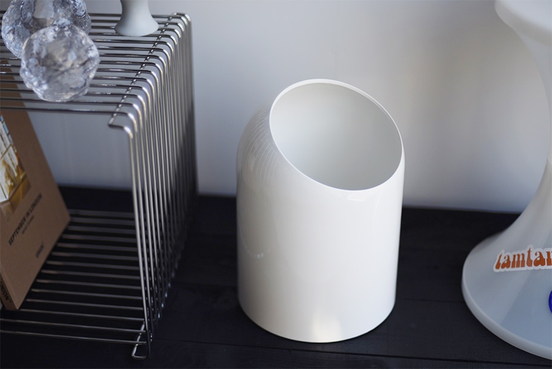 円筒形を斜めにカットしたシンプルで愛嬌あるフォルムのゴミ箱です。