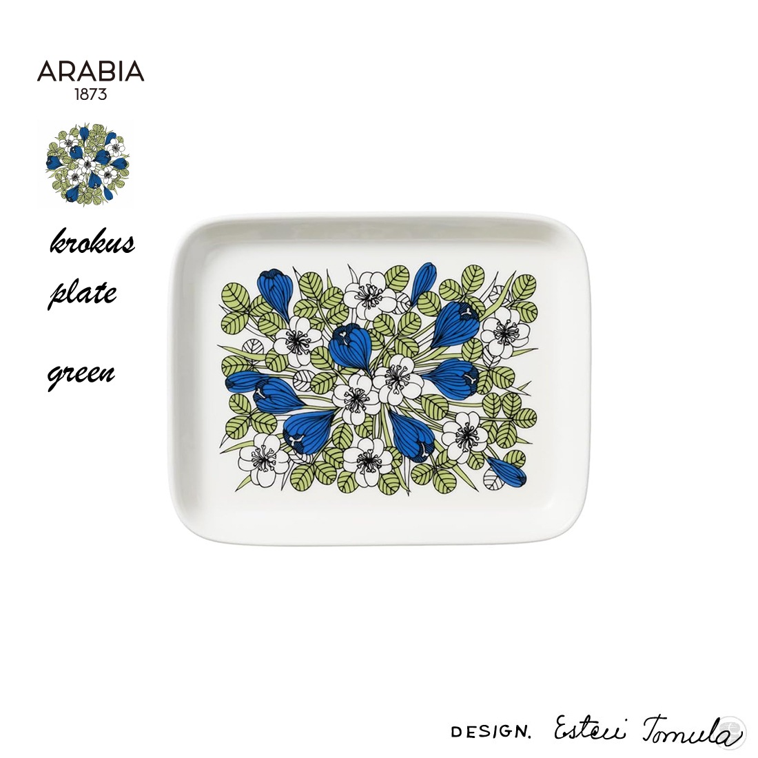 ARABIA アラビア Krokus Plate Green Esteri Tomula クロッカス スクエアプレート グリーン エステリ・トムラ