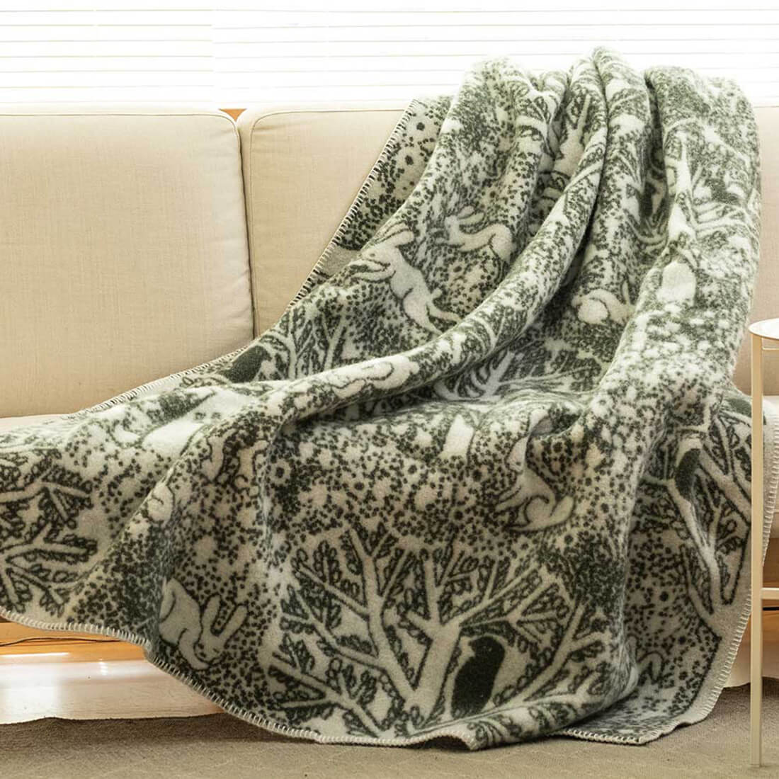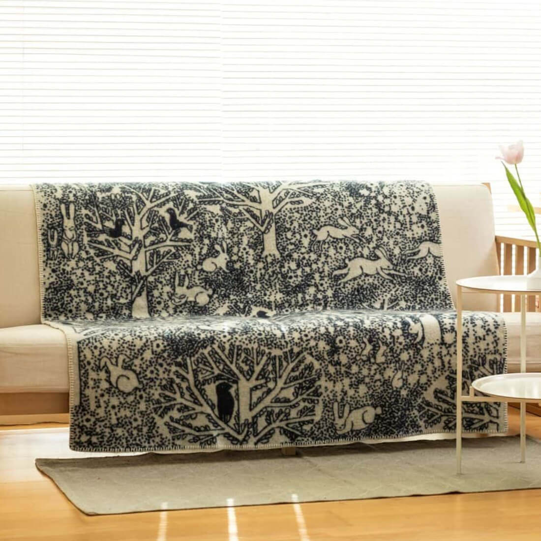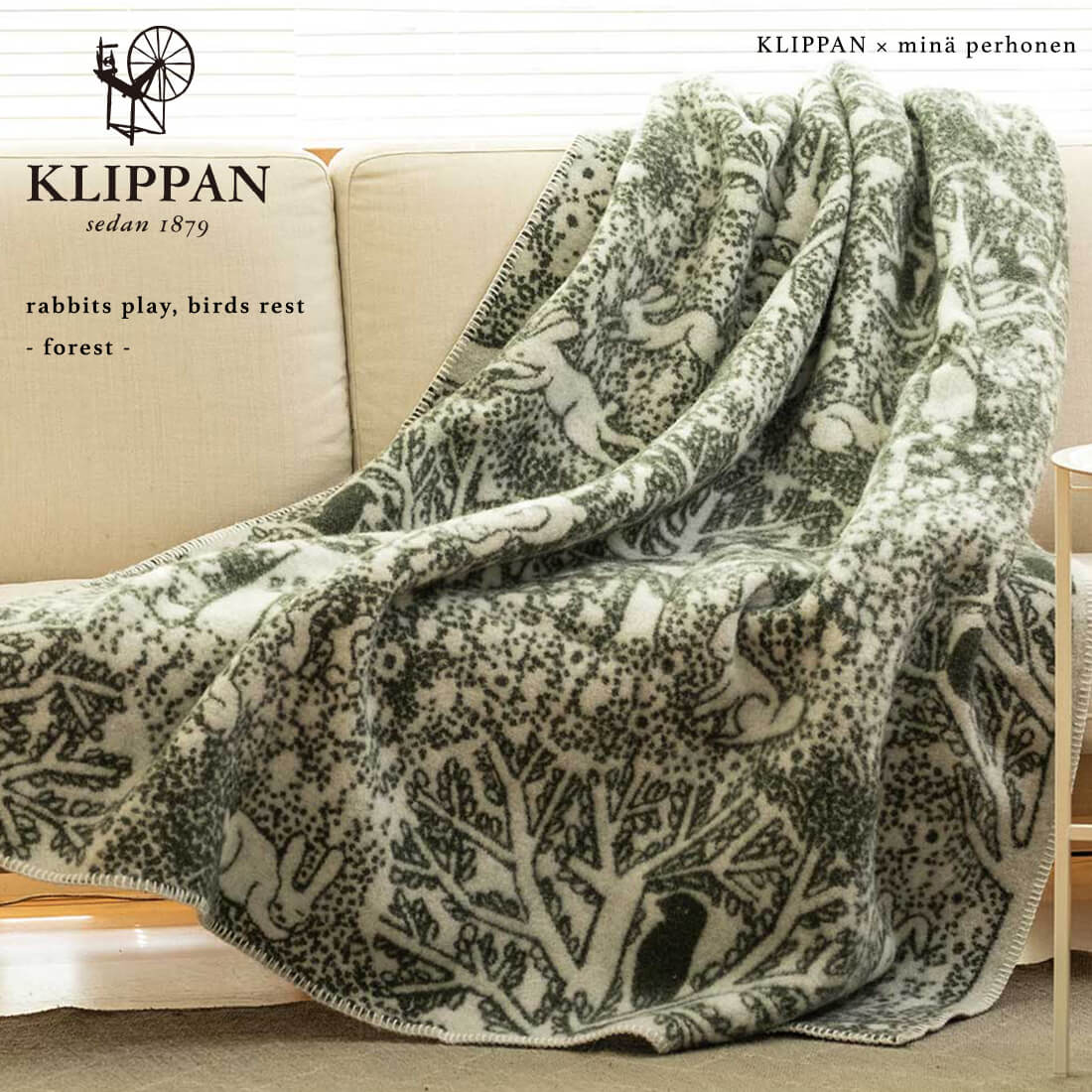 KLIPPAN クリッパン ウール シングルブランケット rabbits play, birds rest - forest - 北欧 冬物