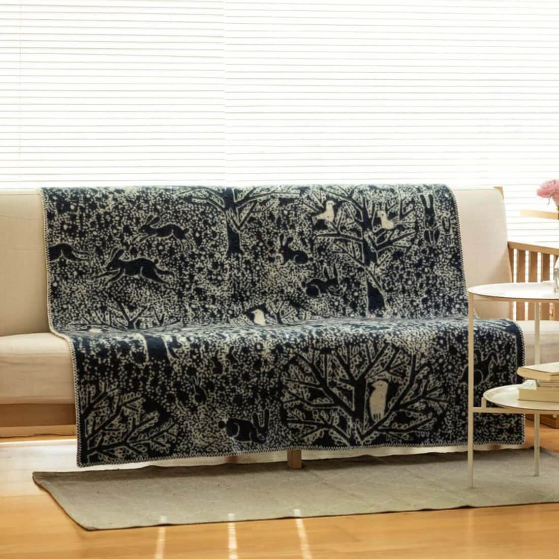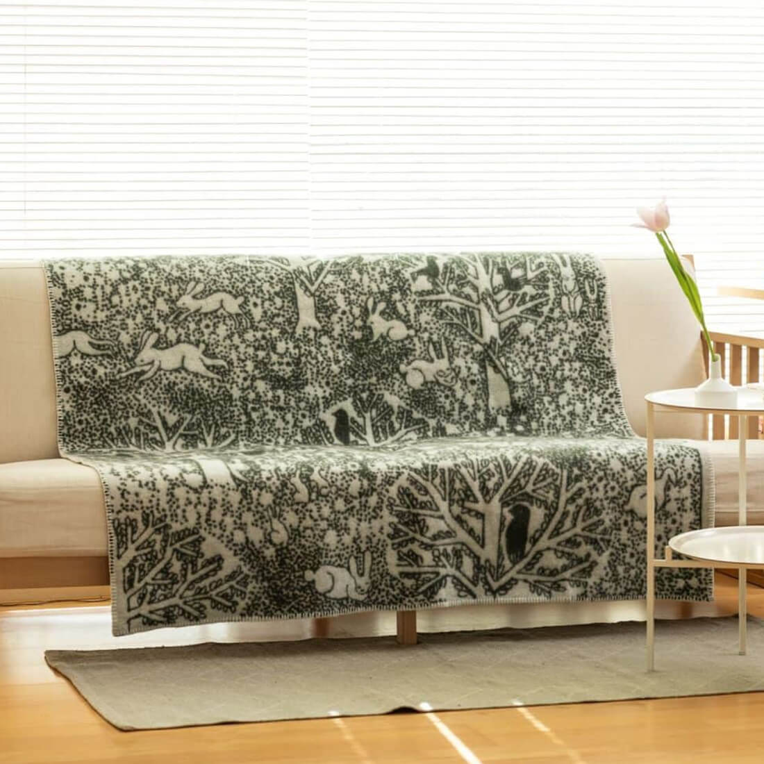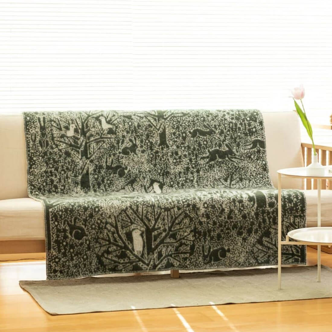 KLIPPAN クリッパン ウール シングルブランケット rabbits play, birds rest - forest - 北欧 冬物