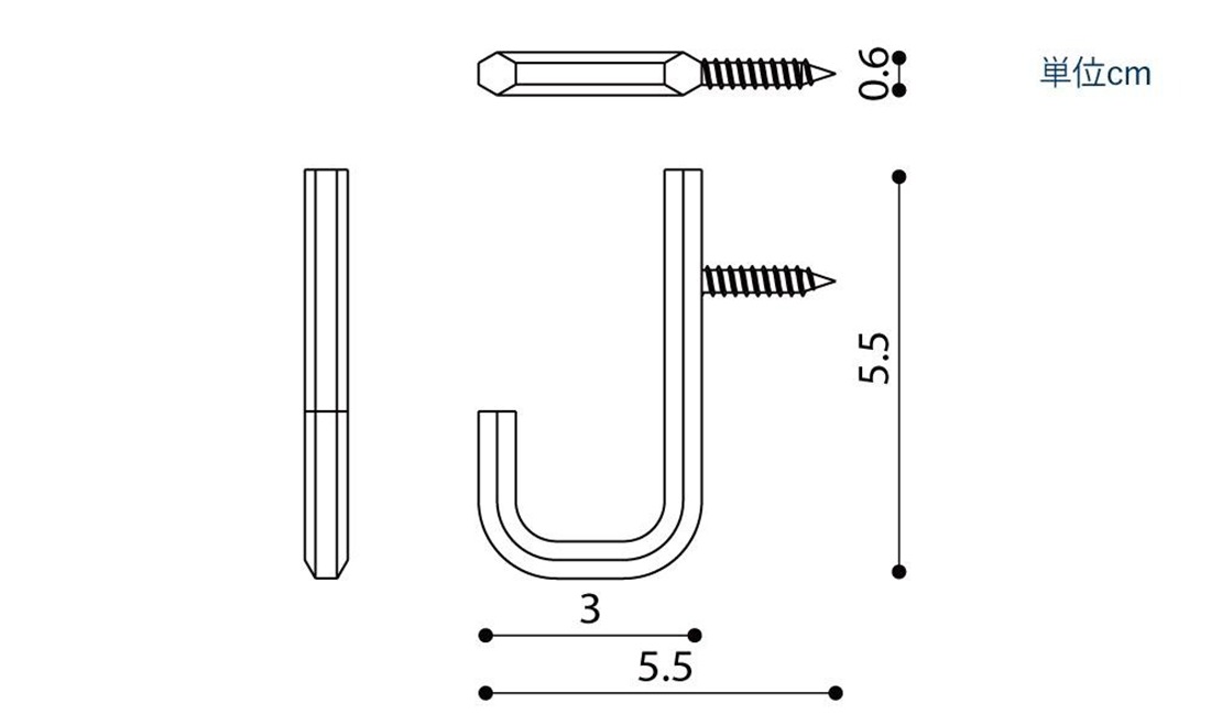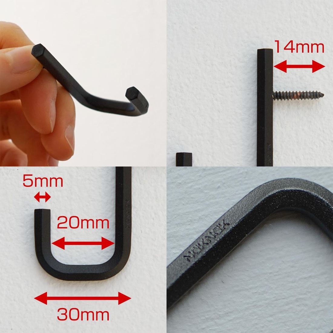 フックにはあらかじめ深さ14mmのネジがついていて