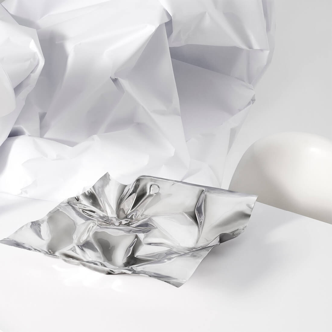 このトレイは一目でそれとわかる押しつぶされたような表面を持つ、目を引く独特のデザインが特徴。
