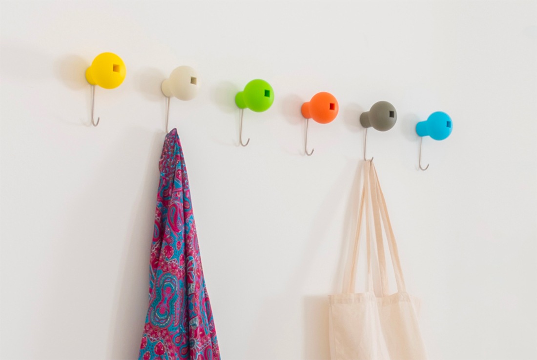 カラフルな配色の壁設置型コートハンガー