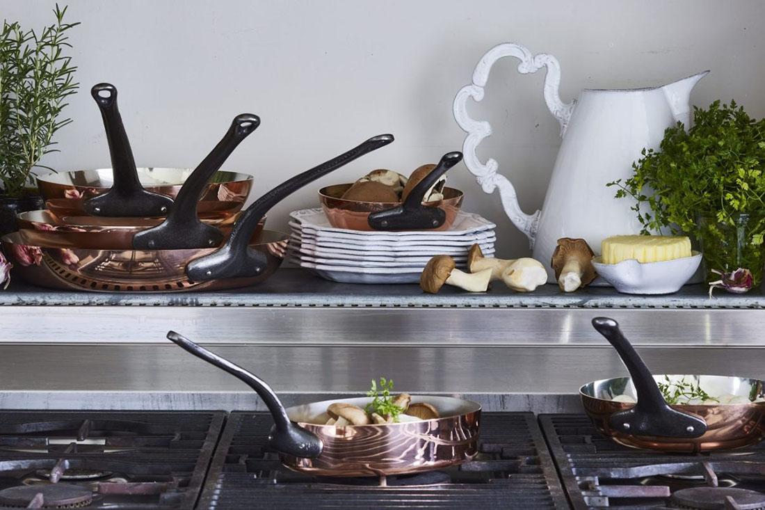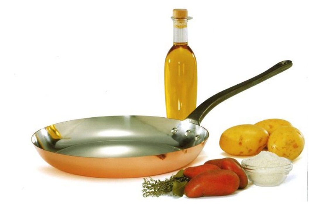 内側が錫メッキされた頑丈な銅製フライパンは、